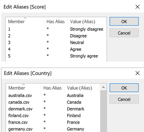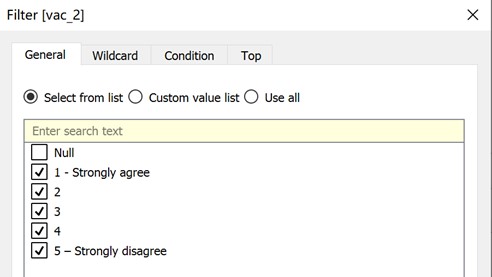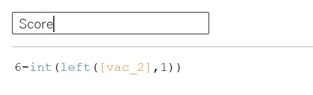 Create calculation filed named “Score” to extract numbers from “vac_2”, and replace “1 – Strongly Agree” to “5” and so on. Then convert “Score” to dimension.