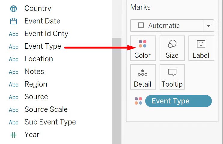 - Drag ‘Event Type’ to Color.