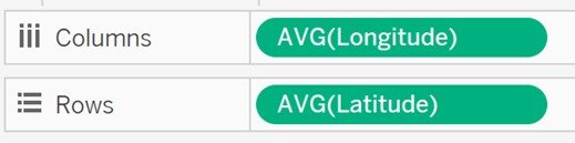 - Drag ‘Longitude’ and ‘Latitude’ to Columns and Rows respectively.
