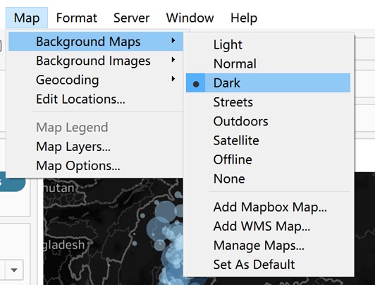 - Set the Background Maps to Dark.
